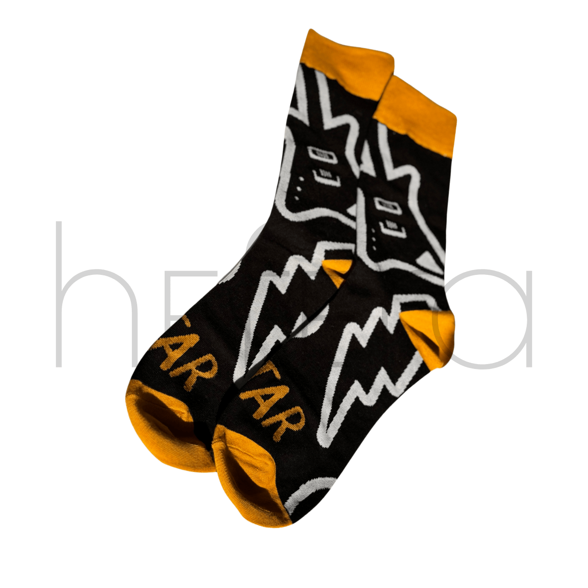 جوراب مردانه هفرا مدل Rock Star ترکیبی از استایل جسورانه و راحتی روزمره است. با طرحهای گرافیکی الهامگرفته از دنیای موسیقی راک و رنگبندی مشکی و زرد، این جوراب انتخابی خاص برای کسانی است که استایلشان امضای خودشان را دارد.